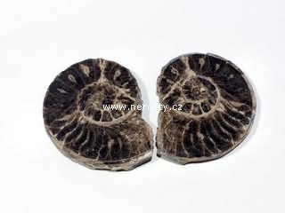 Druhohory, křída, stáří 135 - 70 miliónů let. Fosílie je rozříznuta na dvě poloviny. Vyjímečně pěkný kus. |