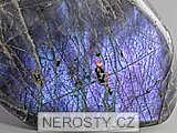 Leštěný volně tvarovaný kus fialového tzv. purple rain labradoritu.Labradorit s tímto vybarvením má obvykle méně výraznou a hůře patrnou barvoměnu než je tomu u klasických modrých či zlatých kusů a jeho základní barva je světle šedá. Tento labradorit má seříznutou podstavu a je stabilně stojící.