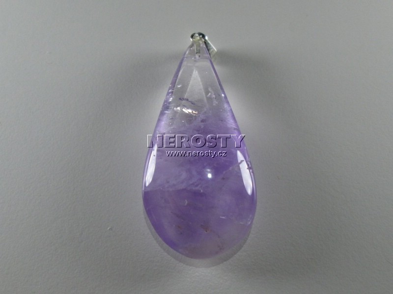Přívěšek ve tvaru kapky. Fialový průhledný kámen. Ametyst částečně přechází v křišťál. Ruční práce. |
