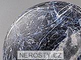 Sodalitová koule s výrazným žilkováním a modrým až tmavě šedomodrým skvrnitým vybarvením.Na této kouli jsou nepříliš výrazné, mělké, hmatem dobře patrné nedokonalosti v opracování korespondující s přírodní porézností materiálu.