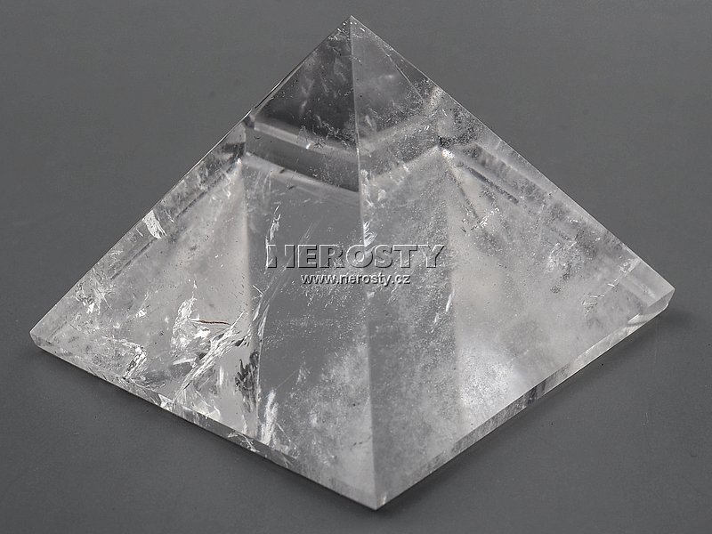 Pyramida z kusu ledově čirého až průhledného křišťálu s minimem růstových poruch. |