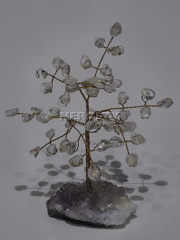 Stromeček štěstí. Kmen tvoří zkroucené drátky, podložkou je ametyst. Stromeček lze libovolně natvarovat, uvedená výška je pouze orientační. |