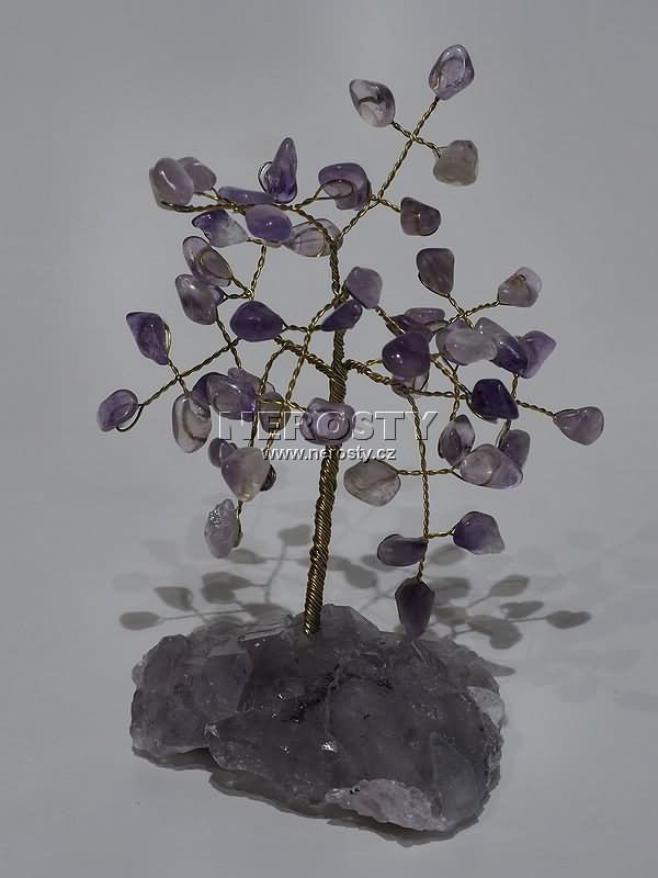 Stromeček štěstí. Kmen tvoří zkroucené drátky, podložkou je ametyst. Stromeček lze libovolně natvarovat, uvedená výška je pouze orientační. |