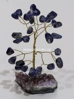 Stromeček štěstí. Kmen tvoří mosazné drátky, podložkou je ametyst. Stromeček lze libovolně natvarovat, uvedené rozměry jsou pouze orientační. |