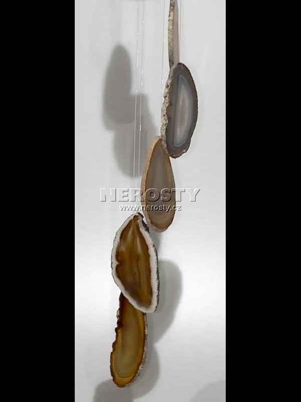 Zvonkohra z přibarvených achátových plátků.Zvonkohra je vyrobena z přibarvovaných, původně šedých až béžových, achátových plátků. Vzhledem k tomu, že jejich pestré barvy na slunci blednou, nedoporučujeme její zavěšení na osluněné místo.
