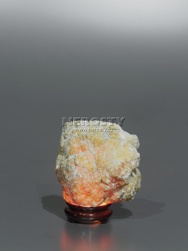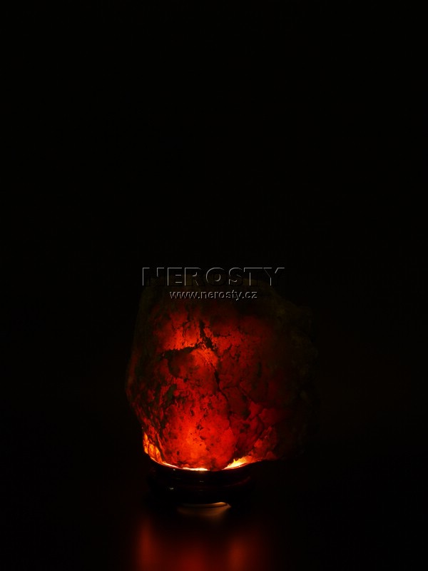 Lampa z hlízy červeno-oranžově prosvítajícího selenitu. V kameni je otvor o průměru 40 mm pro osazení žárovky.Kabel s objímkou a žárovkou není součástí dodávky a je možné jej objednat zde.