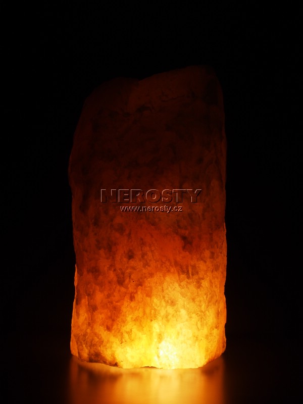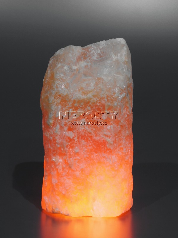 Štípaná lampa, vyrobená z bloku oranžového krystalického selenitu. V kameni je otvor o průměru 40 mm pro osazení žárovky.Kabel s objímkou a žárovkou není součástí dodávky a je možné jej objednat zde.