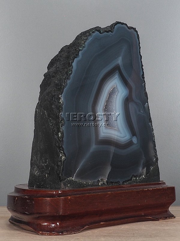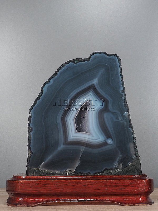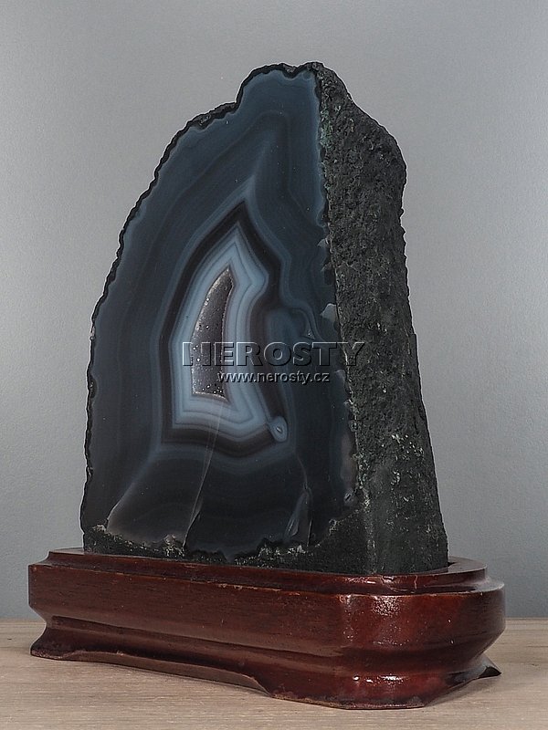 Klasický leštěný brazilský achát s dobrou kresbou a s minimem prasklin.Achát je osazený v dřevěném podstavci, rozměry uvádíme včetně něj.