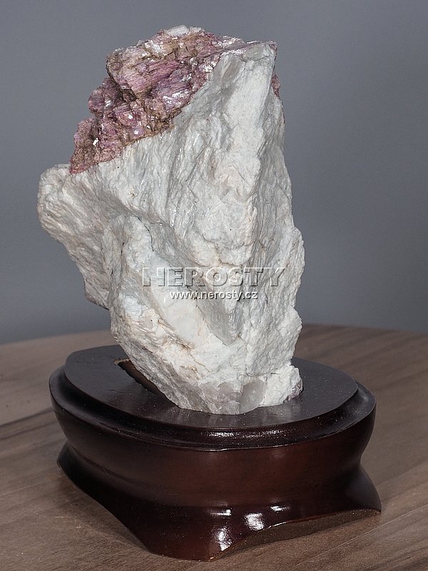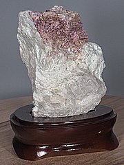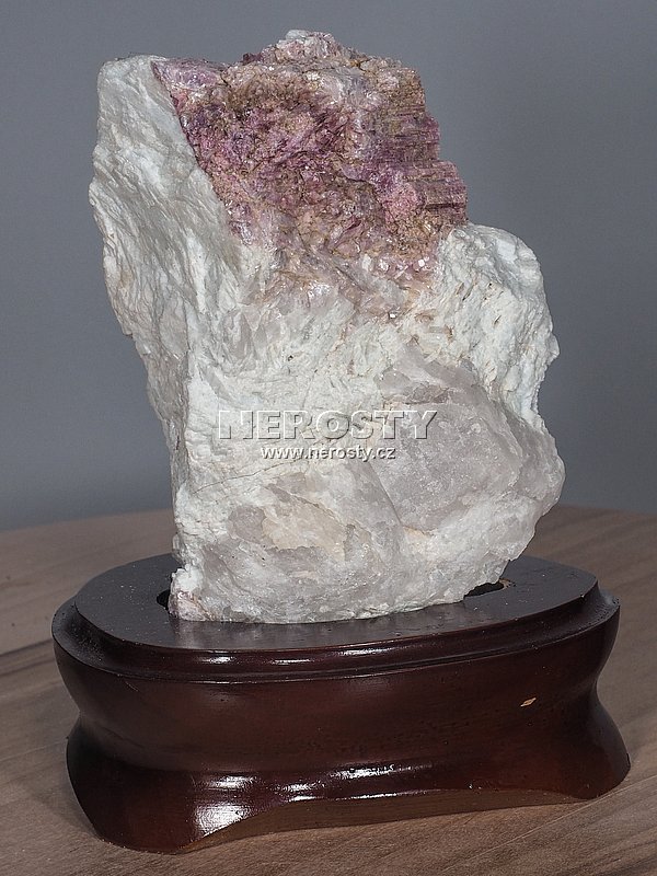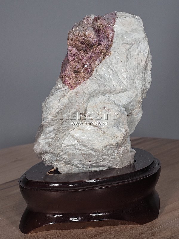 Dekorativní kámen zasazený v lakovaném dřevěném podstavci.Podstavec vykazuje drobné nedokonalosti ve zpracování povrchu včetně oděrek laku. Rozměry a hmotnost uvádíme včetně podstavce.