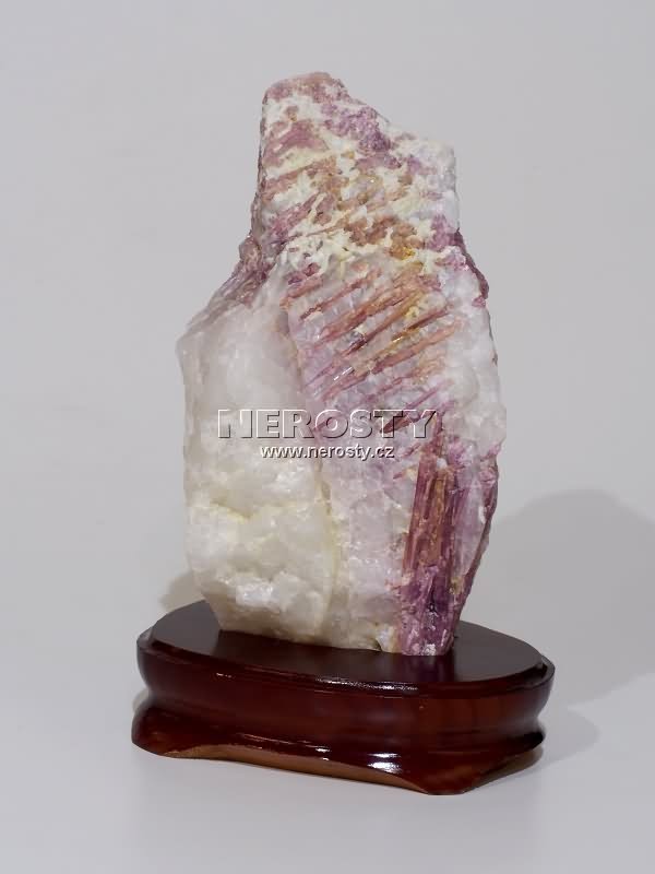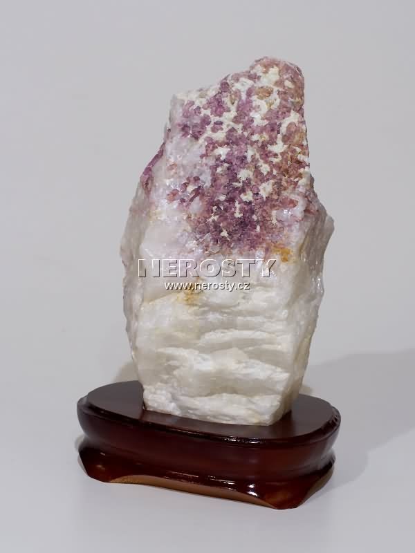 Dekorativní kámen v dřevěném podstavci. |