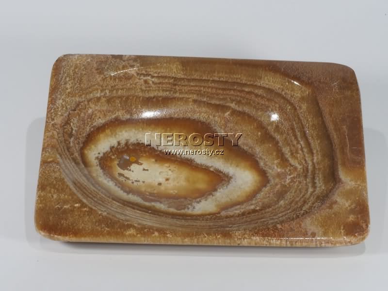 Talířek z kamene s originálním tvarem, vzorem a vybarvením. |