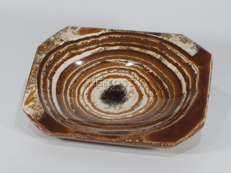 Talířek z kamene s originálním tvarem, vzorem a vybarvením. |