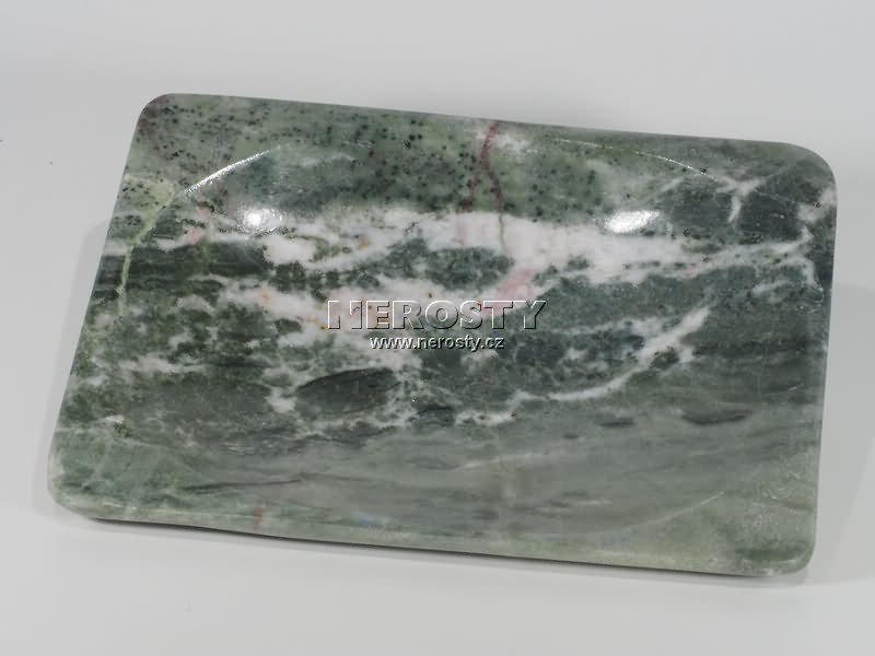 Talířek z kamene s originálním tvarem, vzorem a vybarvením.