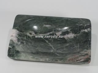 Talířek z kamene s originálním tvarem, vzorem a vybarvením. |