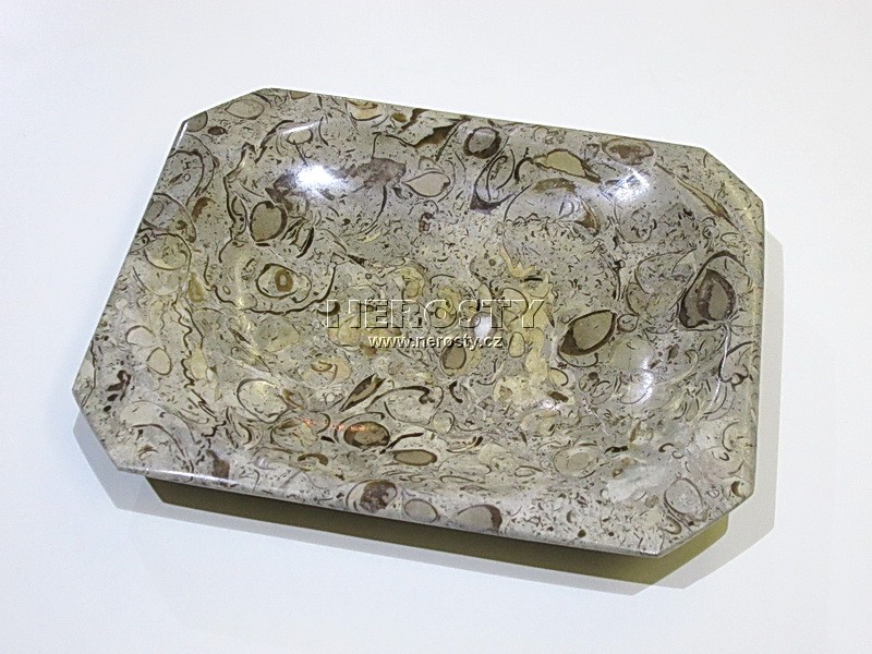 misky hranaté - vápenec s fosíliemi, hranatý talířek, #8089,