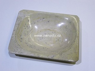 Dekorativní předmět z kamene s originálním vzorem a vybarvením. Materiálem je aragonit vysrážený z horkýcgh pramenů. |