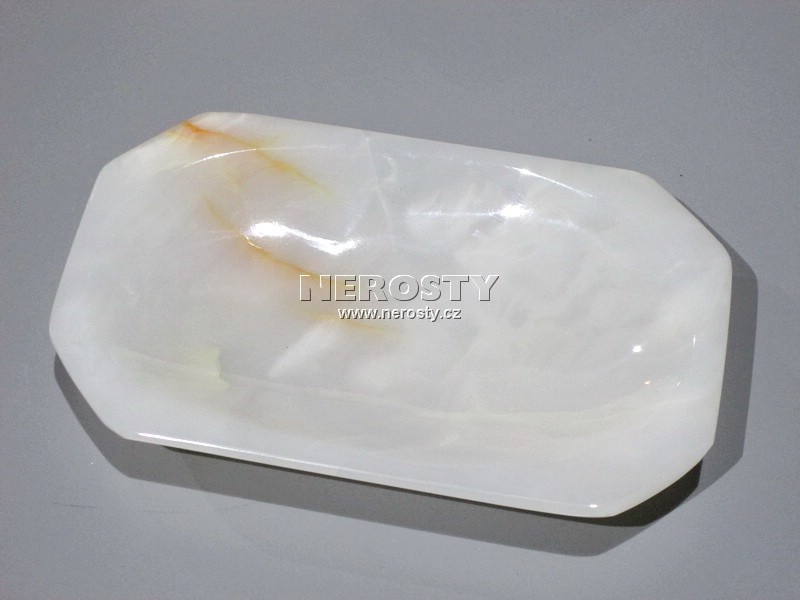 Dekorativní předmět z kamene s originálním vzorem a vybarvením. Materiálem je aragonit vysrážený z horkýcgh pramenů. |