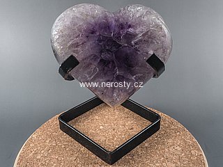 Dekorativní ploché ametystové srdce (rozměr kamene 10,5 x 9.5 x 5 cm) osazené do kovového podstavce.Srdce lze z podstavce vyjmout. Povrchová úprava kovového stojanu odpovídá brazilskému standardu a je nedokonale provedená. Naskýtá se zde možnost nabarvit si podstavec lépe a jiným odstínem barvy který vám bude lépe vyhovovat