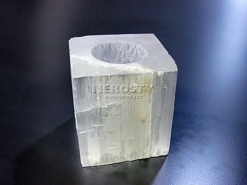 Svícen na čajovou svíčku. Štípaný selenit. |