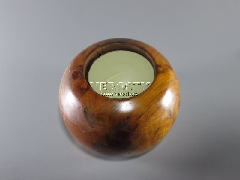 Dekorativní svícen z cedrového dřeva. Vzhledem k tomu, že je z hořlavého materiálu, je jeho použití jako svítidla nebezpečné a nedoporučujeme jej. |