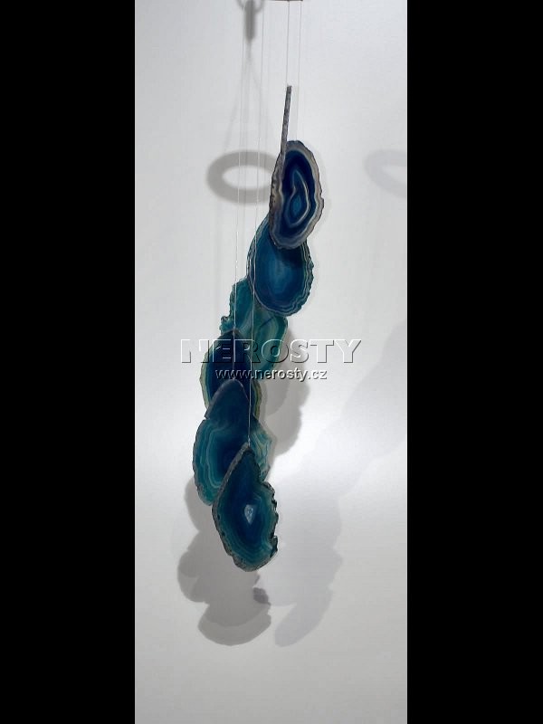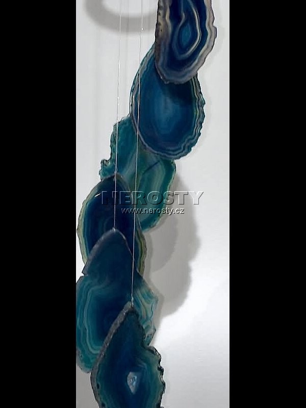 Zvonkohra z přibarvených achátových plátků.Zvonkohra je vyrobena z přibarvovaných, původně šedých až béžových, achátových plátků. Vzhledem k tomu, že jejich pestré barvy na slunci blednou, nedoporučujeme její zavěšení na osluněné místo.