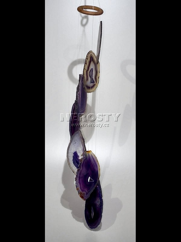 Zvonkohra z přibarvených achátových plátků.Zvonkohra je vyrobena z přibarvovaných, původně šedých až béžových, achátových plátků. Vzhledem k tomu, že jejich pestré barvy na slunci blednou, nedoporučujeme její zavěšení na osluněné místo.