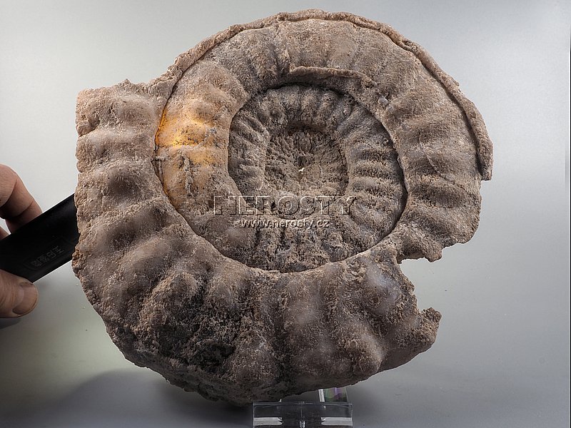 Prokřemenělé schránky amonitů z této lokality jsou většinou drobné a jejich průměr jen zřídka přesahuje 7 cm. Tento opravdu velký a nepoškozený kus se může stát ozdobou právě vaší sbírky. |
