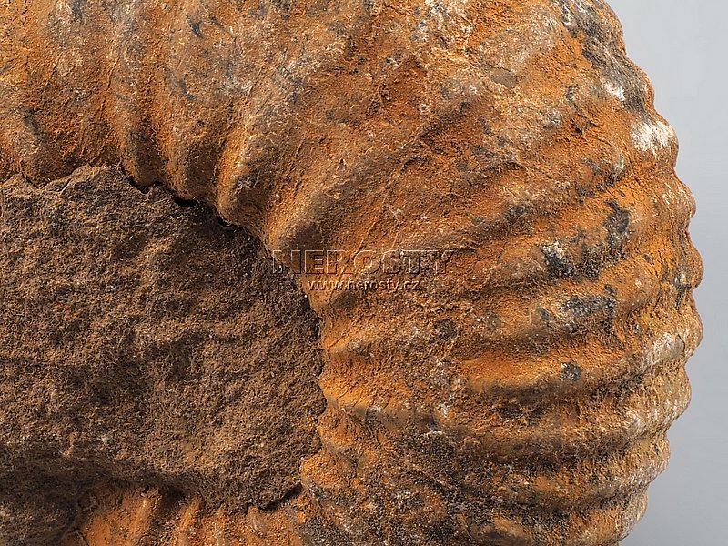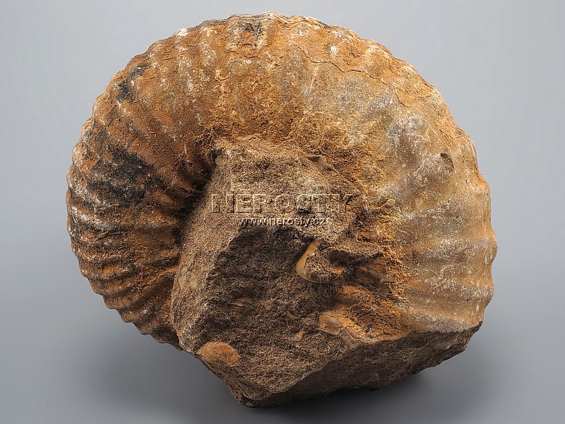 Zkamenělá schránka amonita z období jury.Druhohory, jura, stáří 200 - 145 miliónů let.