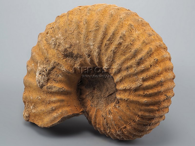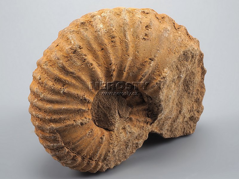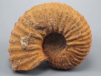 Zkamenělá schránka amonita z období jury.Druhohory, jura, stáří 200 - 145 miliónů let.