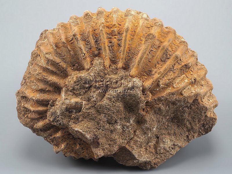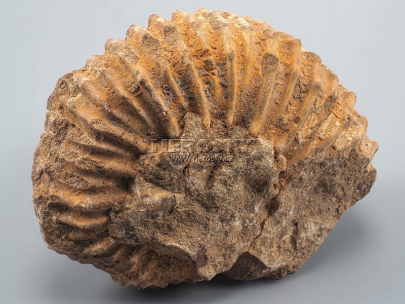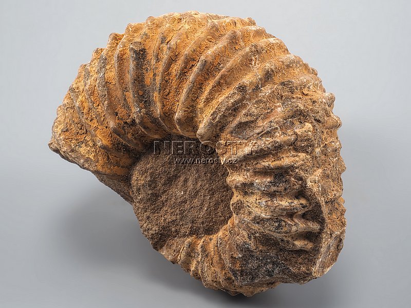 Zkamenělá schránka amonita z období jury.Druhohory, jura, stáří 200 - 145 miliónů let.
