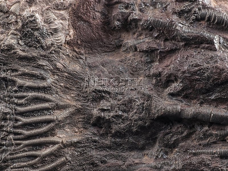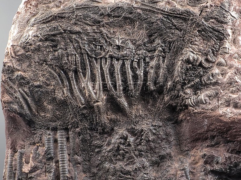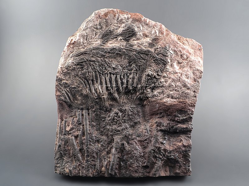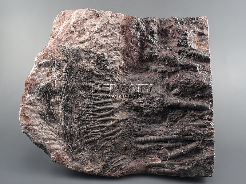 Rekonstruovaná zkamenělina prvohorního crinoidu.Zkamenělý mořský živočich. Prvohory, devon, stáří ~400 miliónů let.