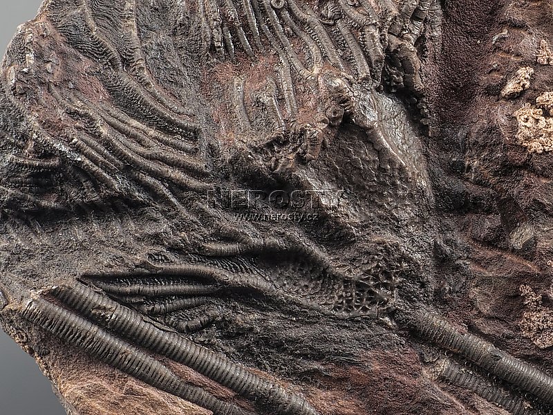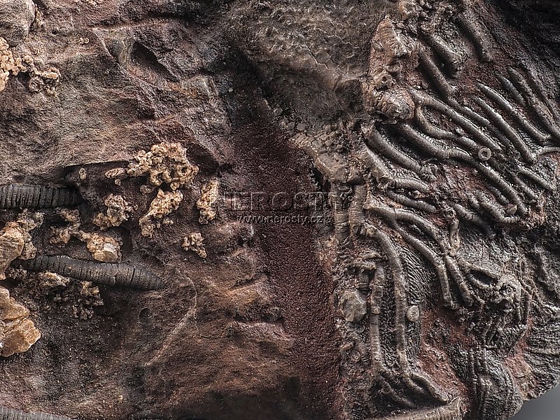 Rekonstruovaná zkamenělina prvohorního crinoidu.Zkamenělý mořský živočich. Prvohory, devon, stáří ~400 miliónů let.