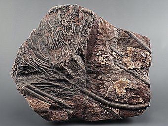 Fosílie je složena z několika dílů, zpevněna a stabilizována. Pro zvýšení kontrastu je opatřena nátěrem, případně přibarvena |