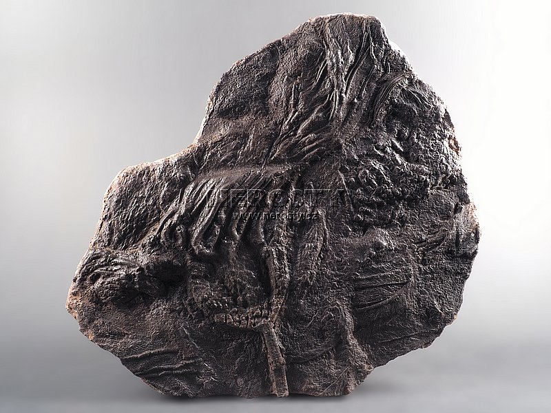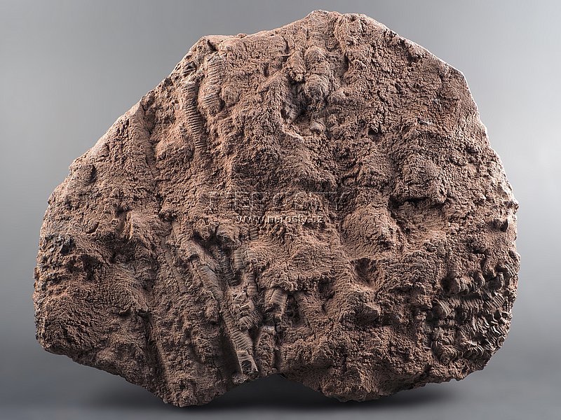 Rekonstruovaná zkamenělina prvohorního crinoidu.Zkamenělý mořský živočich. Prvohory, devon, stáří ~400 miliónů let.