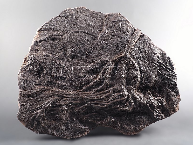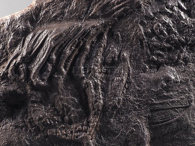 Fosílie je složena z několika dílů, zpevněna a stabilizována. Pro zvýšení kontrastu je opatřena nátěrem, případně přibarvena |