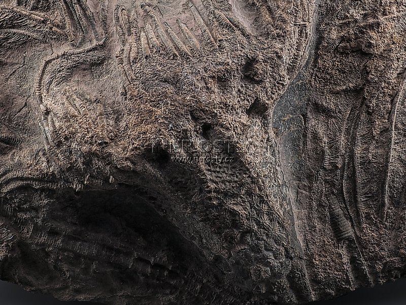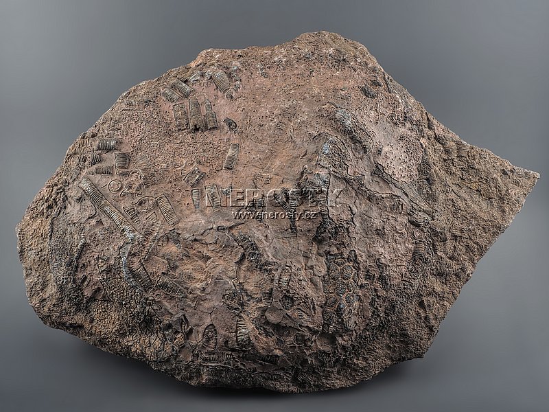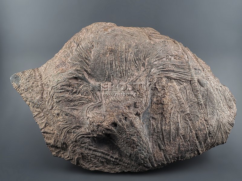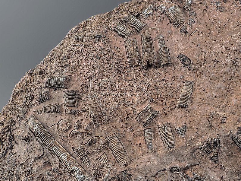 Přirozeně vyvětraná a nerekonstruovaná zkamenělina crinoidu.Zkamenělý mořský živočich. Prvohory, devon, stáří ~400 miliónů let.