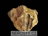 Prvohory, ordovik, stáří 505 - 438 miliónů let. Kompletní konkrekce s trilobitem uvnitř.Tento druh trilobita je označován jako diacalymene ouzregui (synonimum flexicalymene ouzregui).