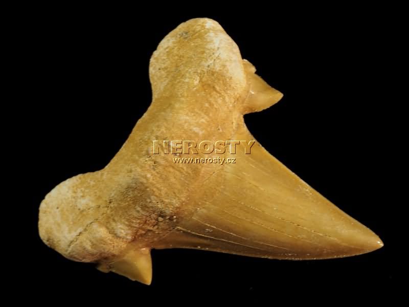 Třetihory, paleogén, stáří 61 - 45 miliónů let. Zub bez dodatečných úprav.Otodus je předchůdce megalodonta. Zuby a fragmenty jeho obratlů jsou prakticky jediný fosilní materiál, který se z této až 12 metrů dlouhé paryby zachoval.