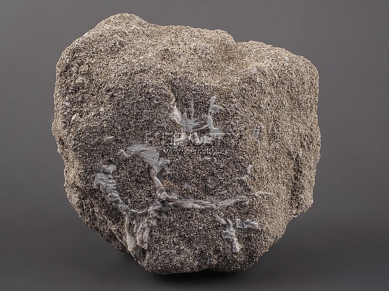 Zub dravého ještěra zarostlý v hornině.Fosílie zubu na fosfátové podložce. Délka vlastního zubu je 2,7 cm.