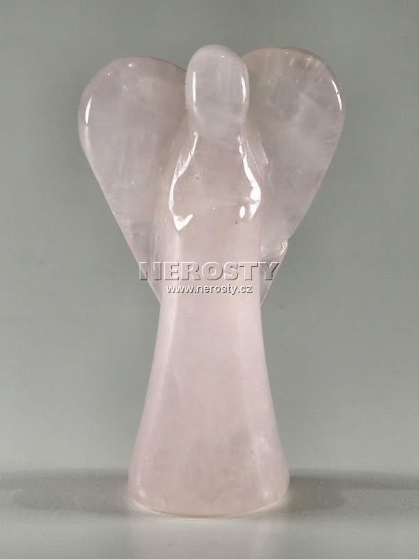 Figurka anděla (stojící), vyrobená z nestejnoměrně zbarveného růženínu. |