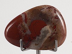 Plochý oboustranně leštěný kus jaspisu s achátovou kresbou. |