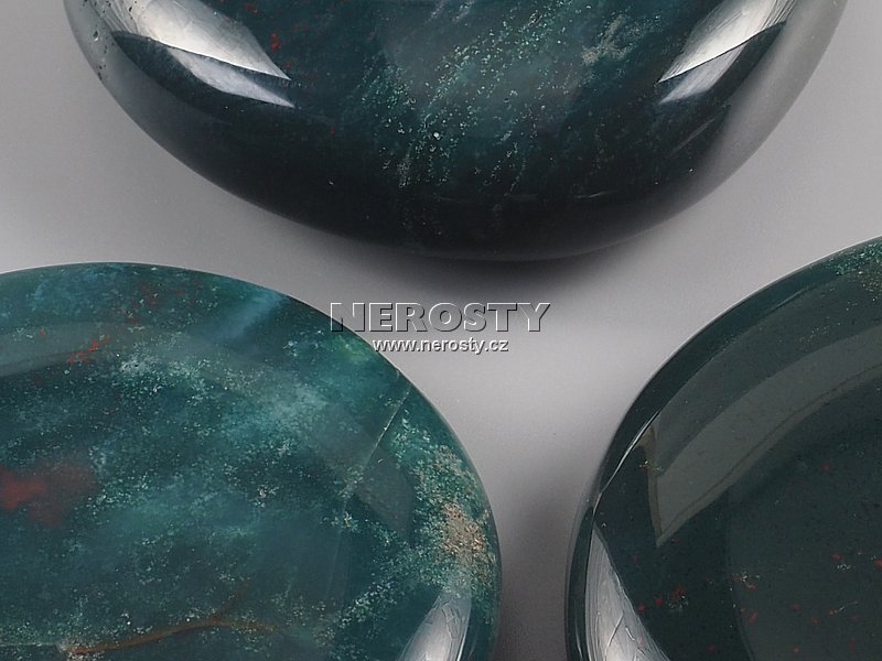Plochý heliotrop, oboustranně leštěný, dobře vybarvený a nepravidelně tvarovaný červeně skvrnitý a v základu zelenomodrý kámen.Uvedené rozměry a hmotnost jsou pouze orientační, velikost a tvar kamenů vykazuje značné odchylky od uvedených hodnot.