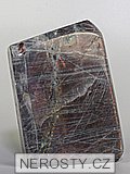 Leštěný volně tvarovaný kus fialového tzv. purple rain labradoritu.Labradorit s tímto vybarvením má obvykle méně výraznou a hůře patrnou barvoměnu než je tomu u klasických modrých či zlatých kusů a jeho základní barva je světle šedá. Tento labradorit má seříznutou podstavu a je stabilně stojící.