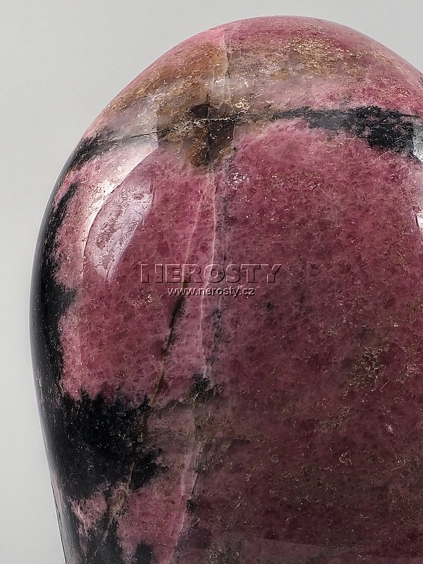 Volně tvarovaný leštěný kus fialového rodonitu.Podstava je seříznuta a lze jej na ni postavit. Může sloužit i jako těžítko.