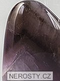 Volně tvarovaný a leštěný kus fialového hradbového ametystu s výraznou strukturou krystalů.Zbarvení ametystu přechází směrem k jeho vrcholu až v záhnědu.