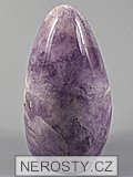 Volně tvarovaný leštěný kus nestejnoměrně probarveného levandulově fialového ametystu.Podstava je seříznuta a lze jej na ni postavit. Může sloužit i jako těžítko.