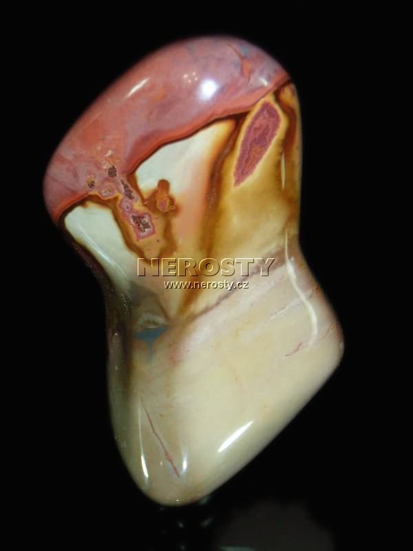 Volně leštěný kus kamene s výraznou kresbou. Podstava je lehce seříznuta a lze jej na ni postavit. Může sloužit i jako těžítko. |
