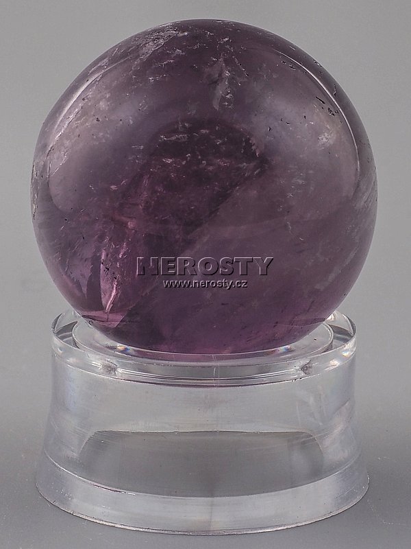 Kulička z nestejnoměrně probarveného průsvitného ametystu. |