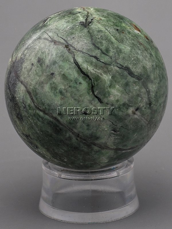 Koule ze zeleného nestejnoměrně vybarveného obecného opálu. |