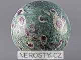 Rubín ve fuchsitu a zoisitu opracovaný do tvaru koule.Pestrobarevná koule je vyrobena z kusu převážně pastelově zeleného zoisitu ve kterém jsou hustě zarostlé nedrahokamové rubíny s obrubou tmavě zeleného fuchsitu, možná spíše pargasitu.